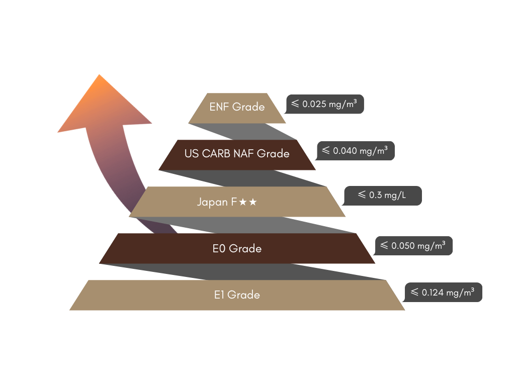Material dengan standar ini memiliki kadar formaldehyde yang sangat rendah.